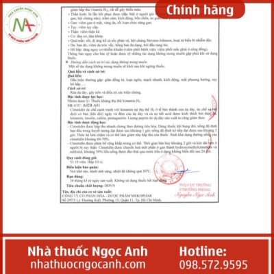 ==>> Xem thêm thuốc: Thuốc Cimetidine 300mg: Công dụng, liều dùng, tác dụng phụ, giá bán