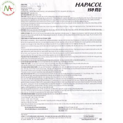 Tờ Hướng dẫn sử dụng thuốc Hapacol 150 Flu. Để tải file PDF, hãy click tại đây.