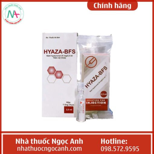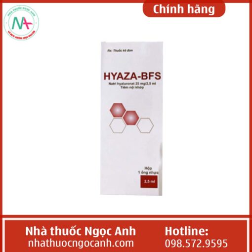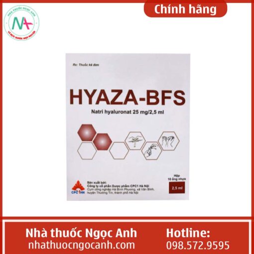 Hyaza – BFS là thuốc tiêm nội khớp được sản xuất bởi Công ty Cổ phần Dược phẩm CPC1 Hà Nội. Hyaza – BFS là thuốc được chỉ định trong điều trị cho bệnh nhân thoái hóa khớp gối mà không đáp ứng hoặc đáp ứng không tốt với các loại thuốc giảm đau thông thường (Paracetamol, NSAIDs…)