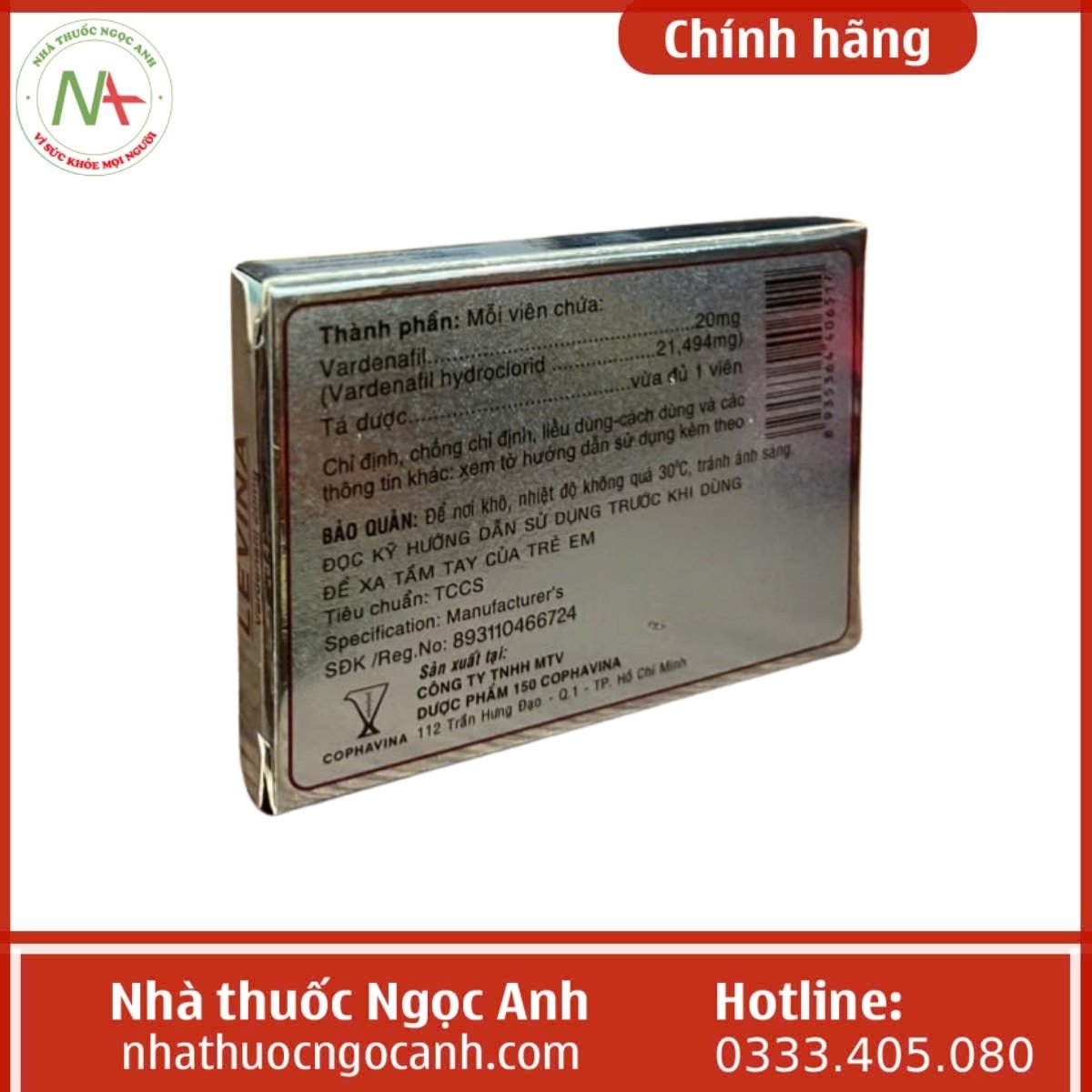 Thuốc Levina 20mg trên thị trường hiện nay có giá khoảng 225.000/hộp 4 viên. Mức giá này có thể chânh lệch nhau một chút tùy vào từng cơ sở.