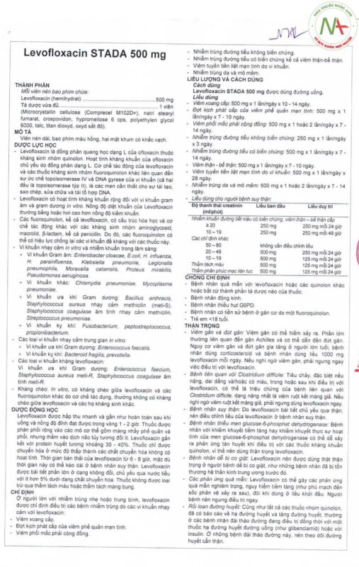Tờ hướng dẫn sử dụng Levofloxacin Stada 500mg tải file PDF tại đây