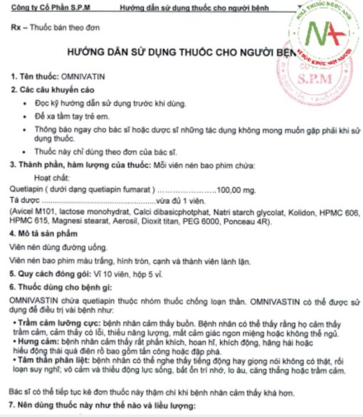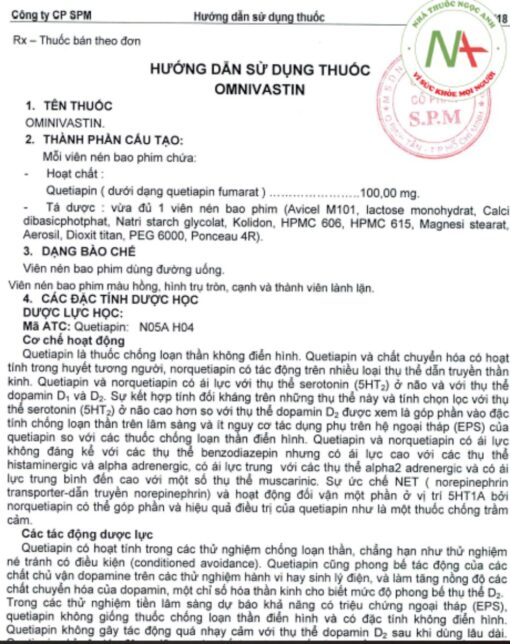 Thuốc Omnivastin 100mg là thuốc được sử dụng điều trị tâm thần phân liệt, rối loạn lưỡng cực.