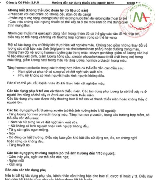 - Quetiapin hàm lượng 100mg dưới dạng Quetiapin fumarat (115,133mg)