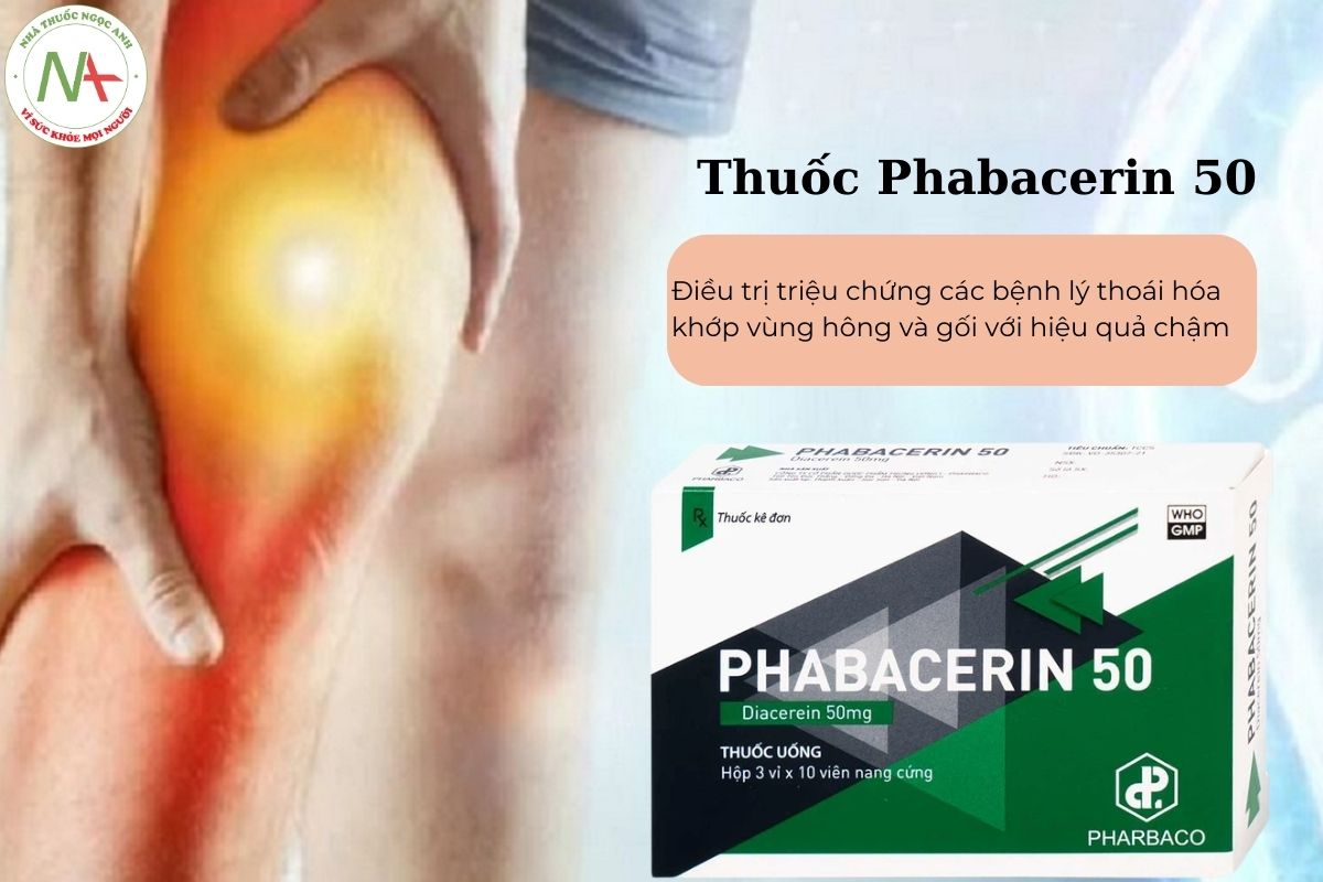 Với cơ chế tác dụng của Diacerein, thuốc Phabacerin 50 được sử dụng trên các đối tượng đang cần điều trị biểu hiện các bệnh lý thoái hóa khớp vùng hông và gối với hiệu quả từ từ.