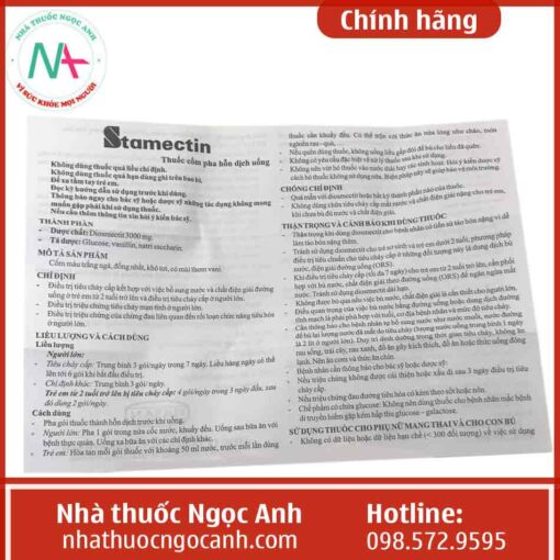 Những dấu hiệu bệnh lý về đường tiêu hóa luôn là nỗi lo lớn với mọi người. Vậy thuốc Stamectin có hiệu quả như thế nào? Cách dùng ra sao? Bài viết dưới đây, Nhà thuốc Ngọc Anh (nhathuocngocanh.com) sẽ giúp độc giả giải đáp toàn bộ các câu hỏi trên.