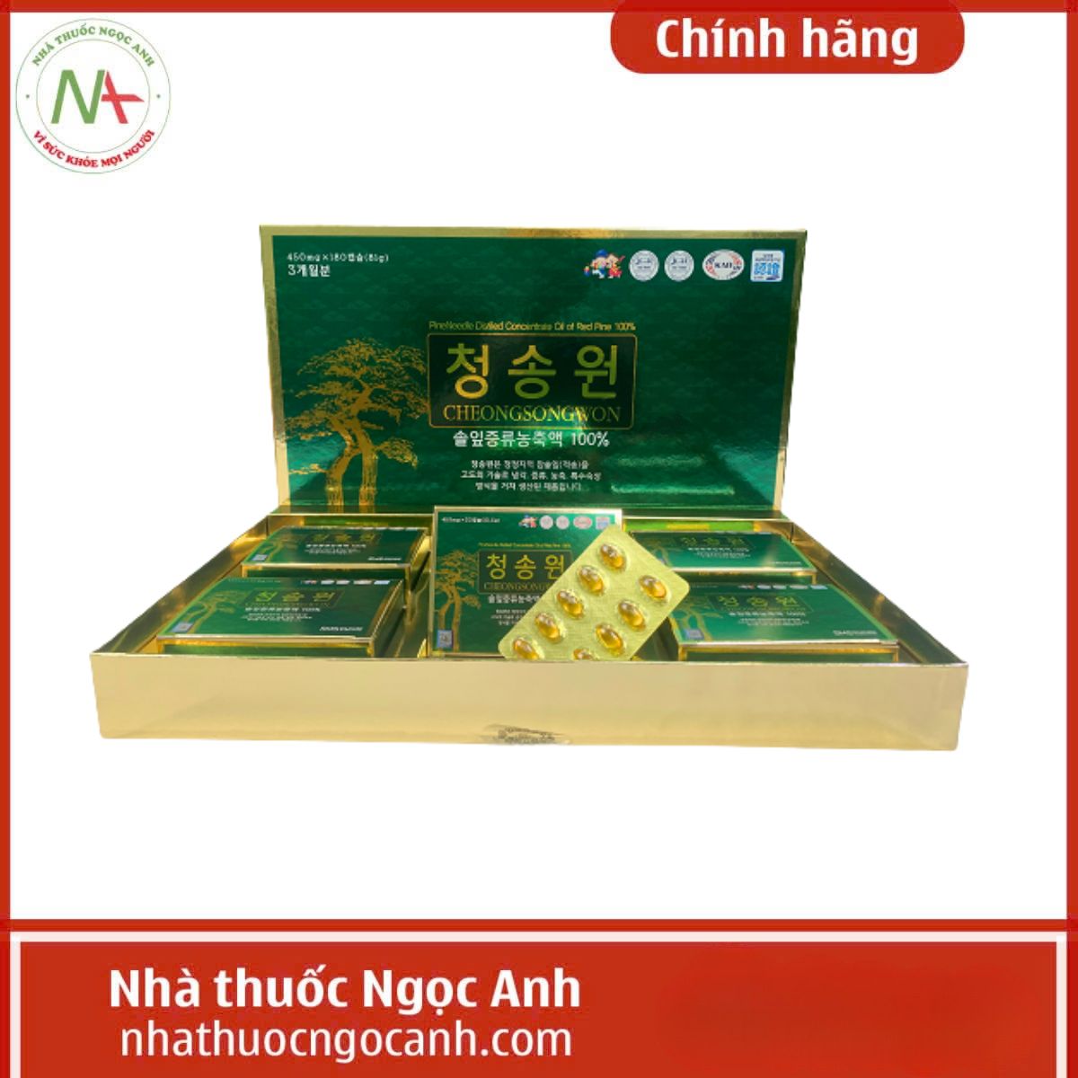 Tinh dầu Thông CheongSongWon (Hộp xanh) dạng viên, sử dụng uống trực tiếp với một lượng nước vừa đủ