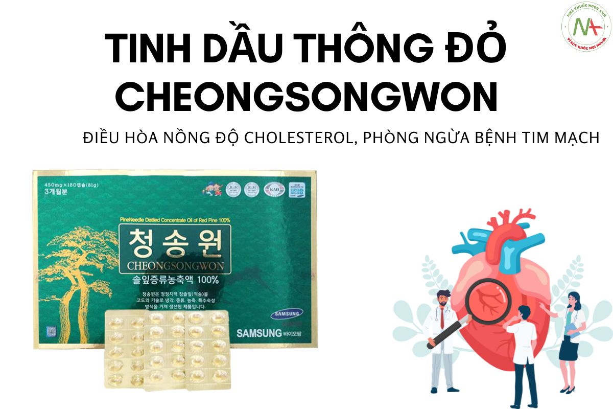 Viên uống Tinh dầu Thông CheongSongWon (Hộp xanh) có công dụng cung cấp các thành phần chống oxy hóa, hạn chế sự hoạt động của các gốc tự do, điều hòa nồng độ cholesterol, phòng ngừa bệnh ý tim mạch.