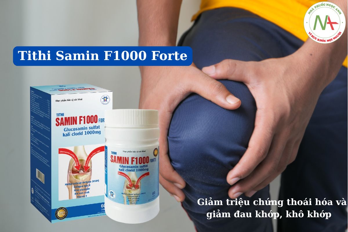 Tithi Samin F1000 Forte có tác dụng bổ sung các dưỡng chất tốt cho khớp giúp tăng tiết dịch khớp và hạn chế lão hóa khớp, giảm triệu chứng thoái hóa và giảm đau khớp, khô khớp