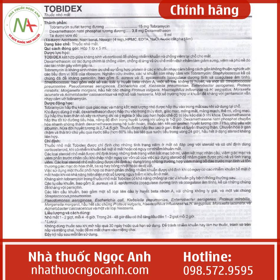 Tờ hướng dẫn sử dụng thuốc Tobidex. Để tải file PDF, hãy click TẠI ĐÂY.