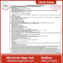 - Tá dược vừa đủ một viên: Magnesium stearate, HPMC 2019, PEG 6000, Dầu paraffin, Gelatin, Erythrosine, Tinh bột sắn, Talc.