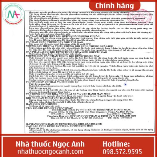 Hấp thu: Alimemazine được hấp thu nhanh qua đường tiêu hóa. Thuốc có tác dụng sau khi uống từ 15 phút đến 20 phút và kéo dài trong vòng 6 – 8 giờ.
