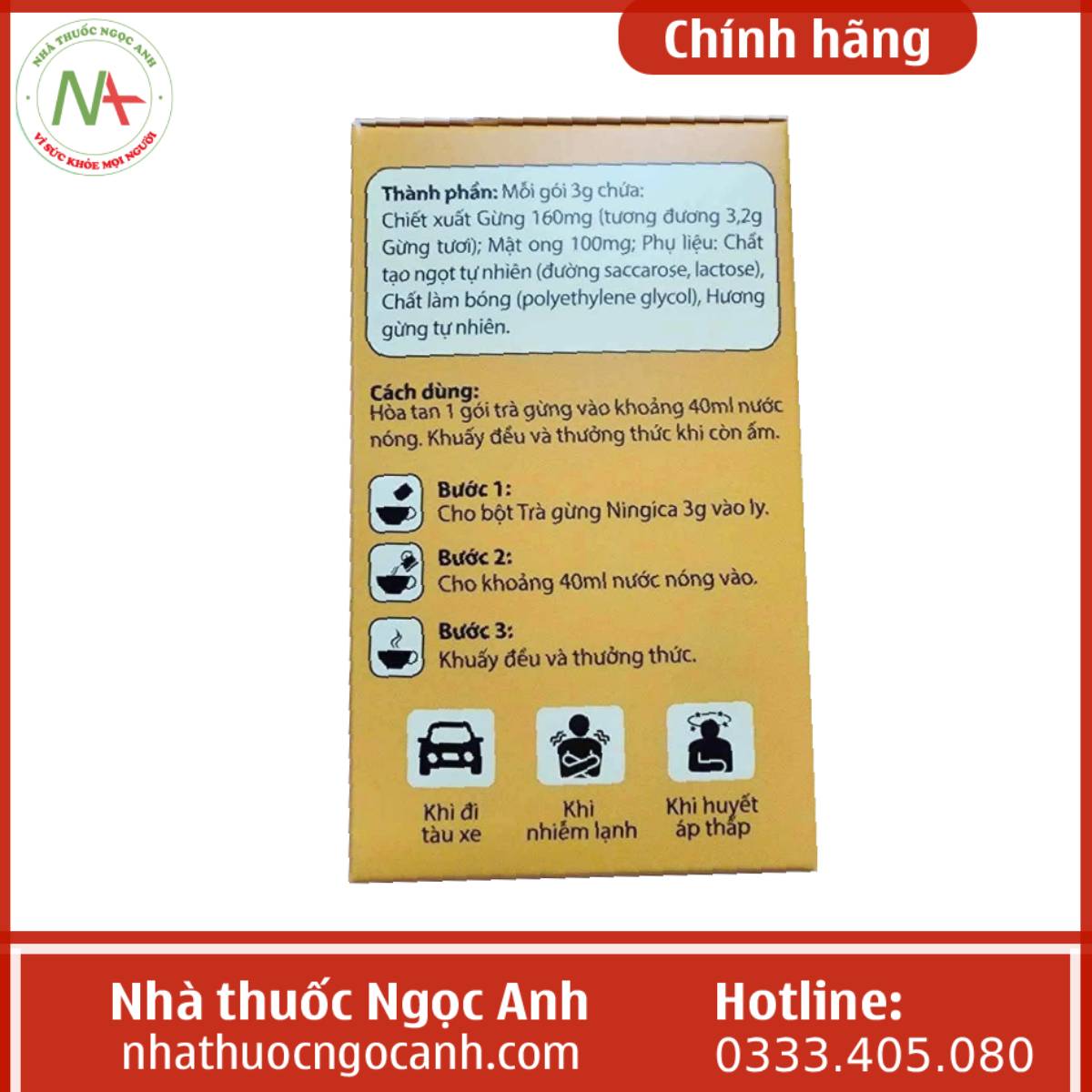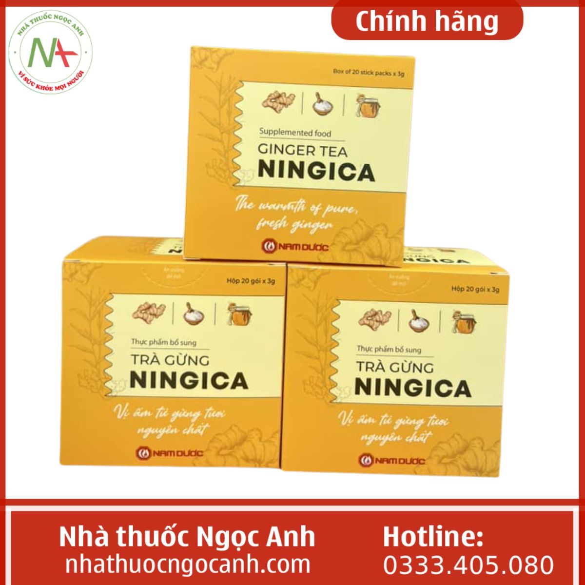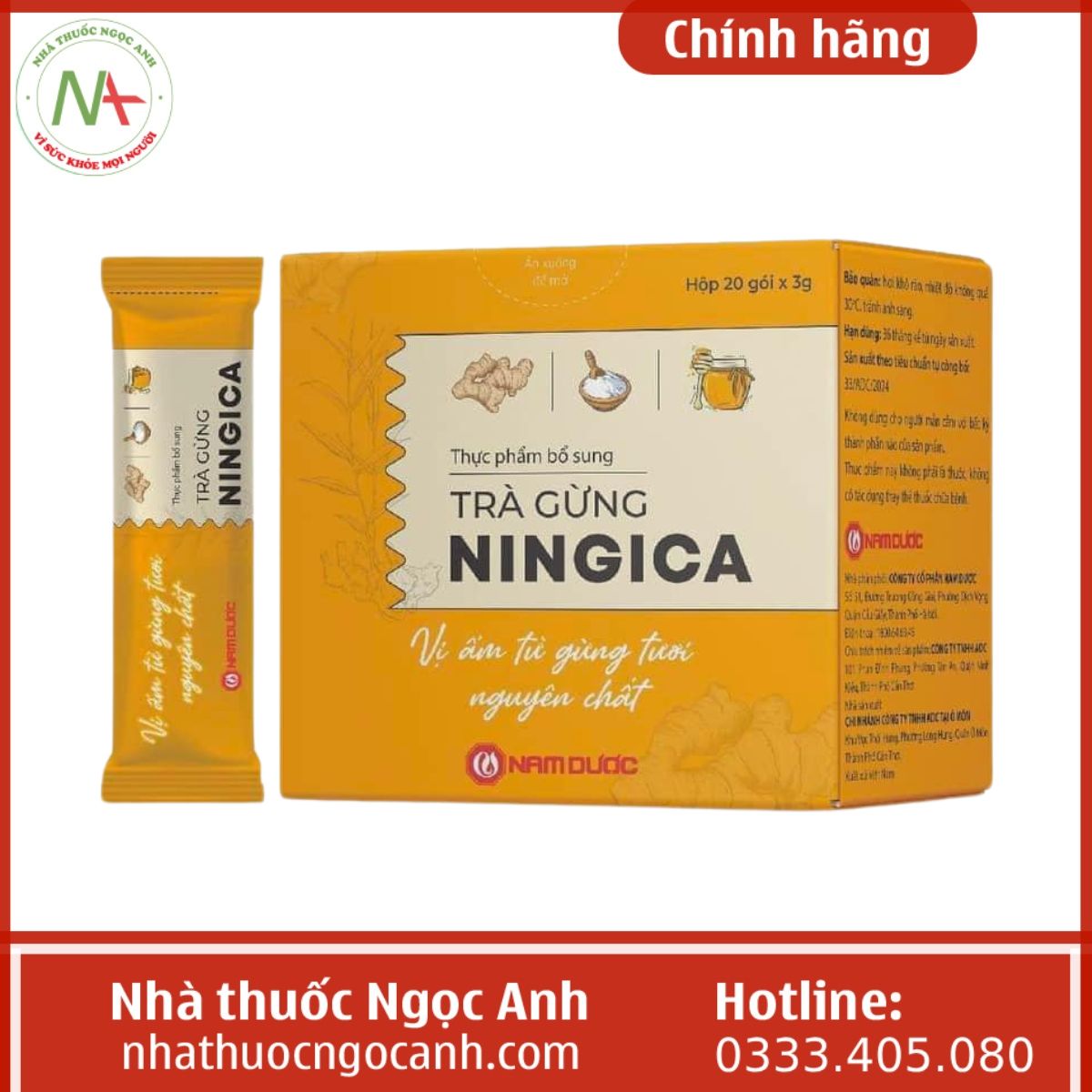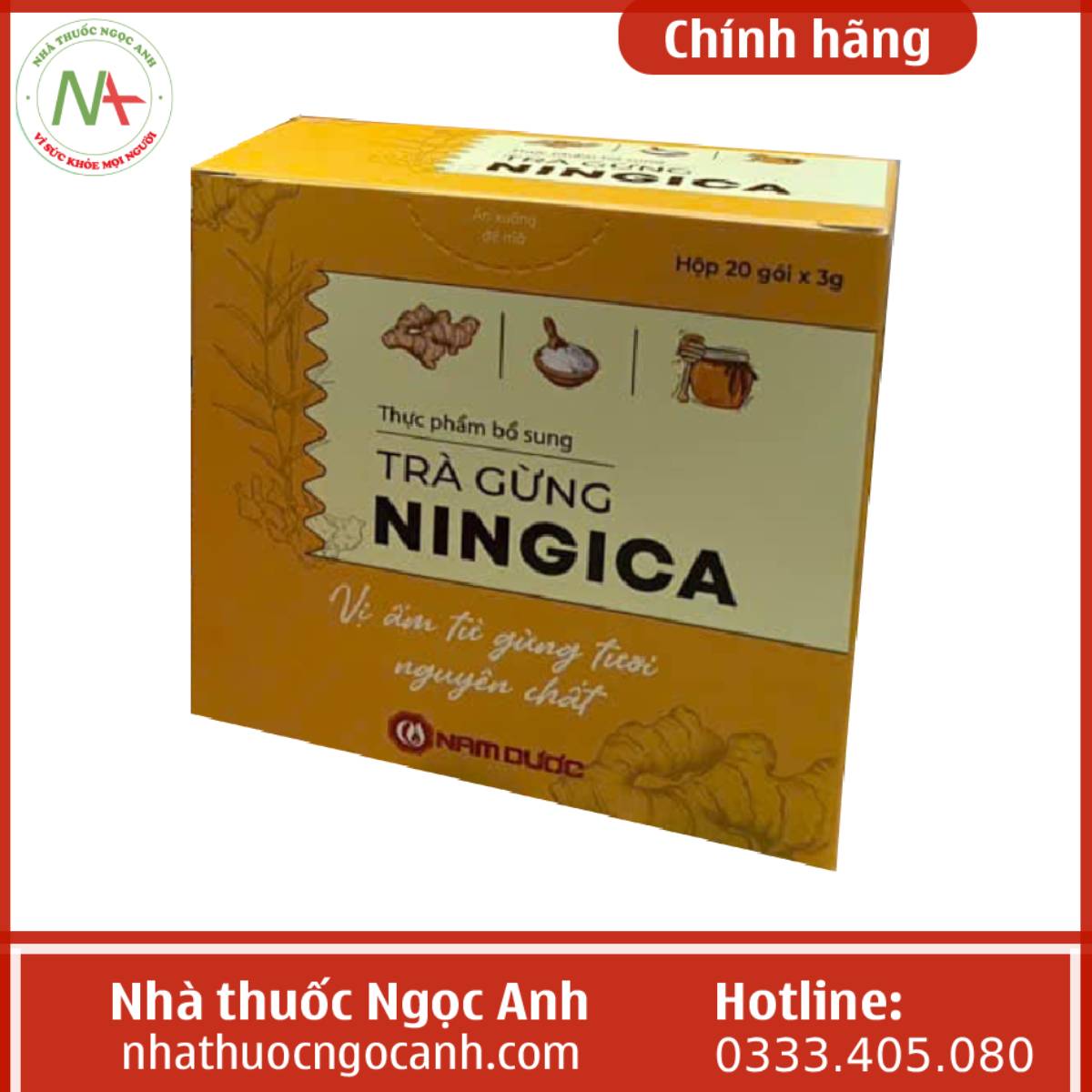 Nhà thuốc Ngọc Anh là địa chỉ bán hàng chính hãng được nhiều khách hàng lựa chọn với đội ngũ nhân viên là các dược sĩ có kinh nghiệm chuyên môn vì vậy các bạn có thể hoàn toàn yên tâm khi mua Trà gừng Ningica Nam Dược chính hãng tại Nhà thuốc Ngọc Anh chúng tôi.