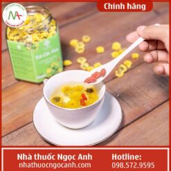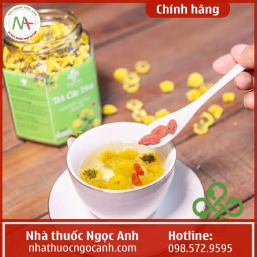 Sản phẩm có chứa hoa cúc khô được sấy lạnh, nên được dùng pha trà và uống.
