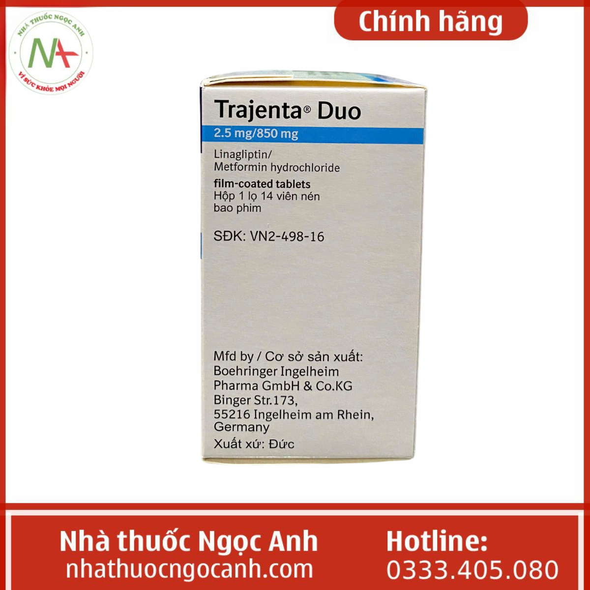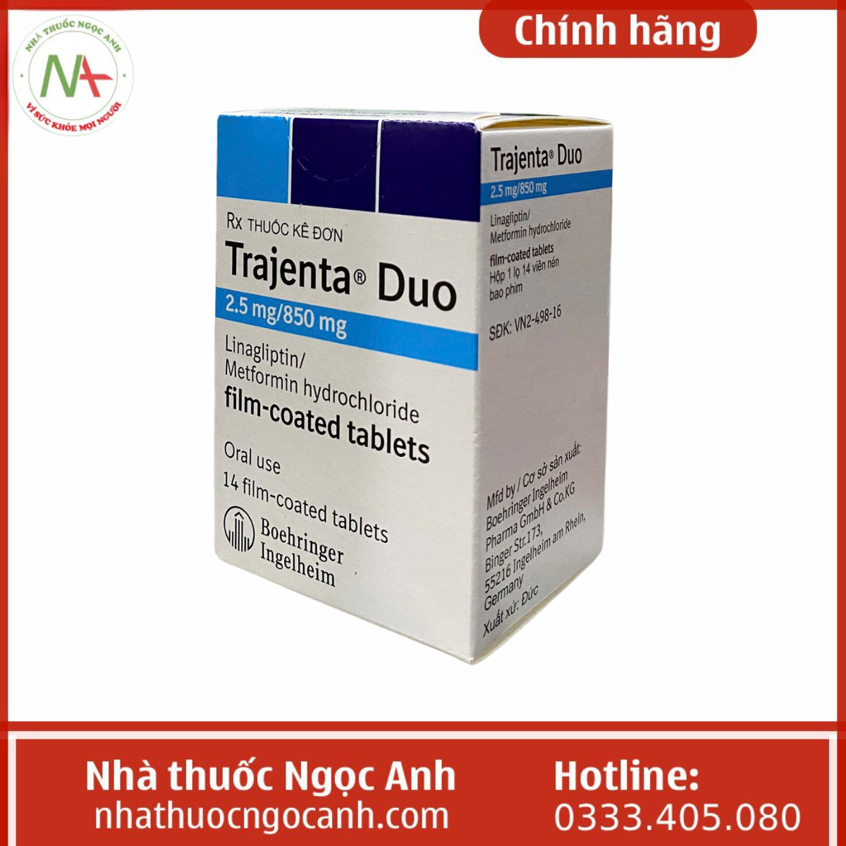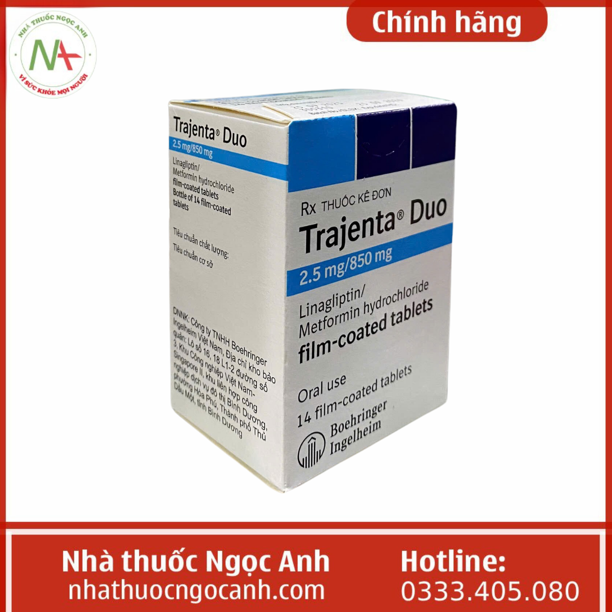 Để mua Trajenta Duo 2.5 mg/850mg chính hãng với giá cả phải chăng và được giao hàng toàn quốc, các bạn có thể mua Trajenta Duo 2.5 mg/850mg tại nhà thuốc Ngọc Anh