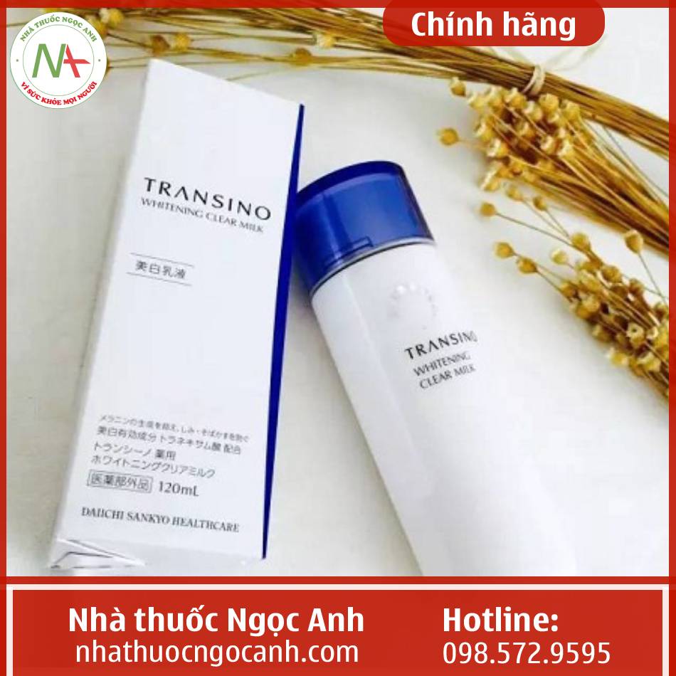 Transino Whitening Clear Milk giá bao nhiêu? Transino Whitening Clear Milk hiện đang được lưu hành trên thị trường Việt Nam với giá 800000 VND cho hộp gồm 01 lọ 120ml. Giá bán của Transino Whitening Clear Milk có thể có sự khác nhau tùy vào một số cơ sở nhà phân phối. Bạn có thể xem giá của sản phẩm trên website của công ty chúng tôi.