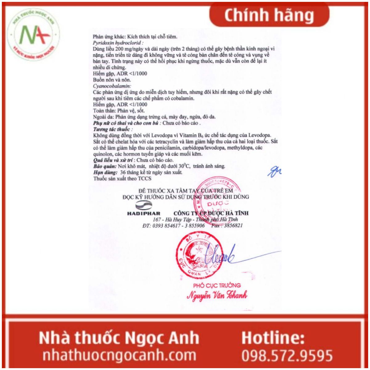 - Pyridoxin.HCl với hàm lượng là 75mg.