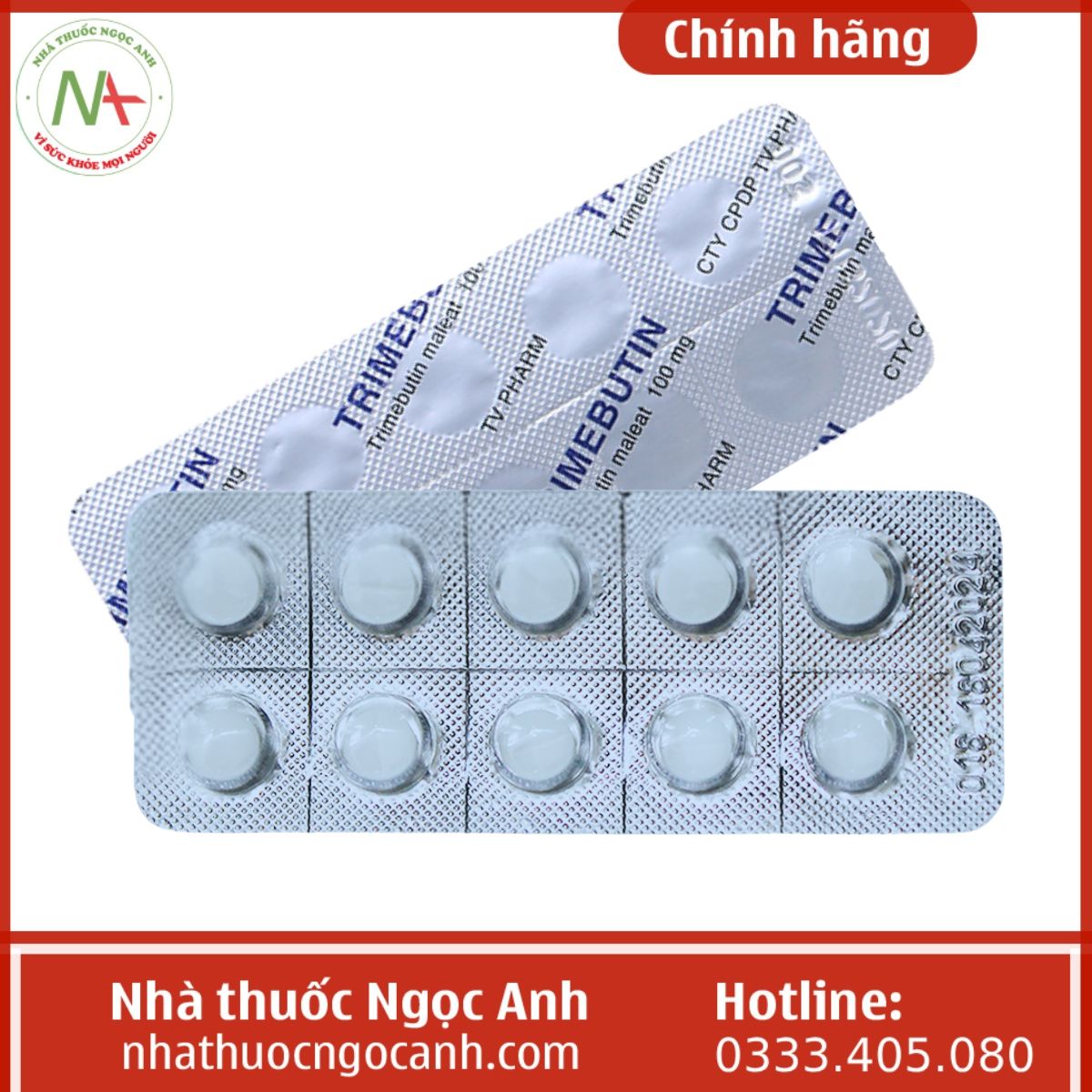 Giá bản của Trimebutin 100mg có thể tìm thấy ở đầu trang hoặc nếu đang cập nhật, vui lòng liên hệ với chúng tôi qua zalo/facebook/hotline hoặc để được giải đáp nhanh nhất, vui lòng nhắn tin trực tiếp trên website Nhà thuốc Ngọc Anh để được tư vấn chi tiết hơn về sản phẩm và giá bán.