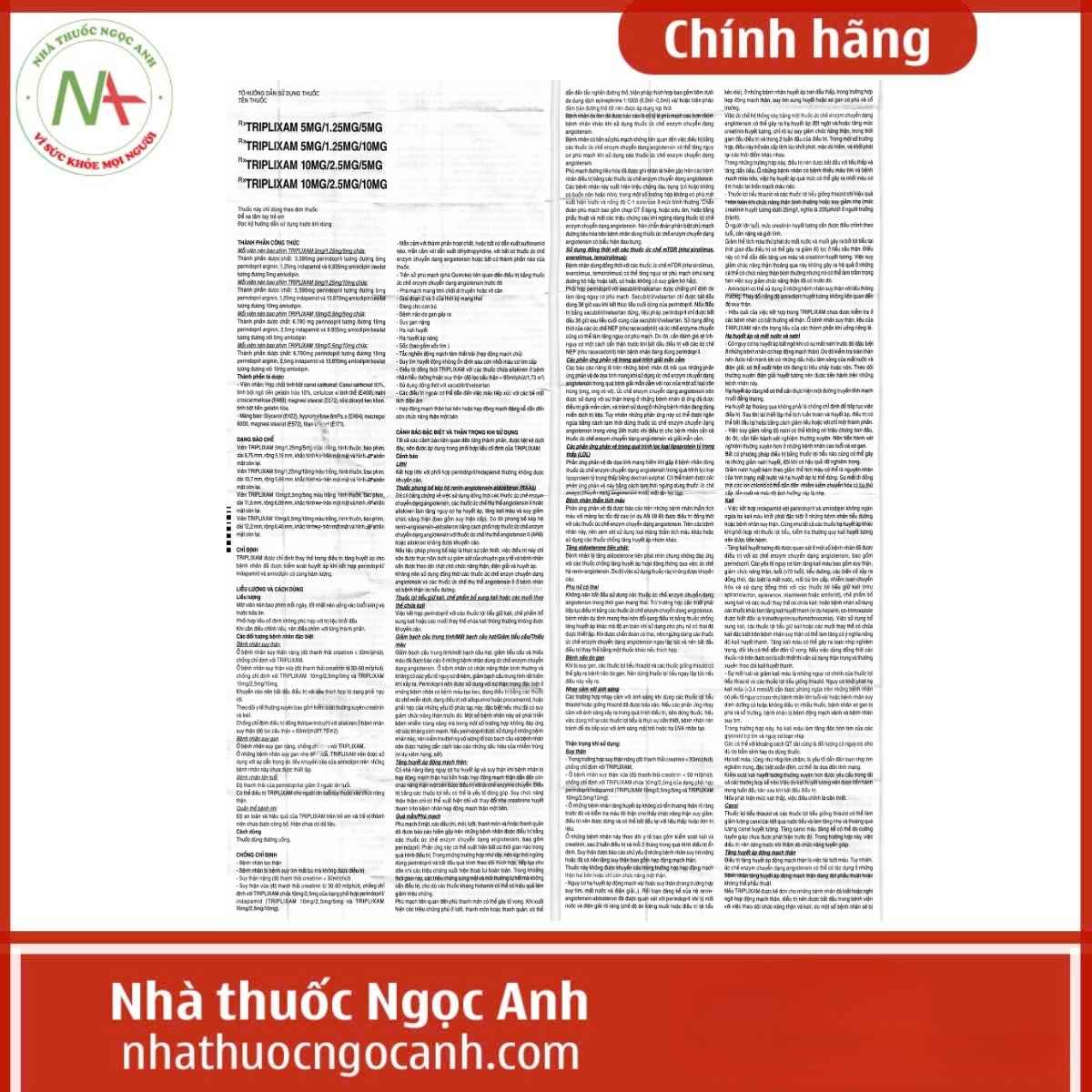 - Tờ Hướng dẫn sử dụng thuốc Triplixam 10mg/2.5mg/10mg do Nhà sản xuất cung cấp. Xem và tải file PDF đầy đủ tại đây.