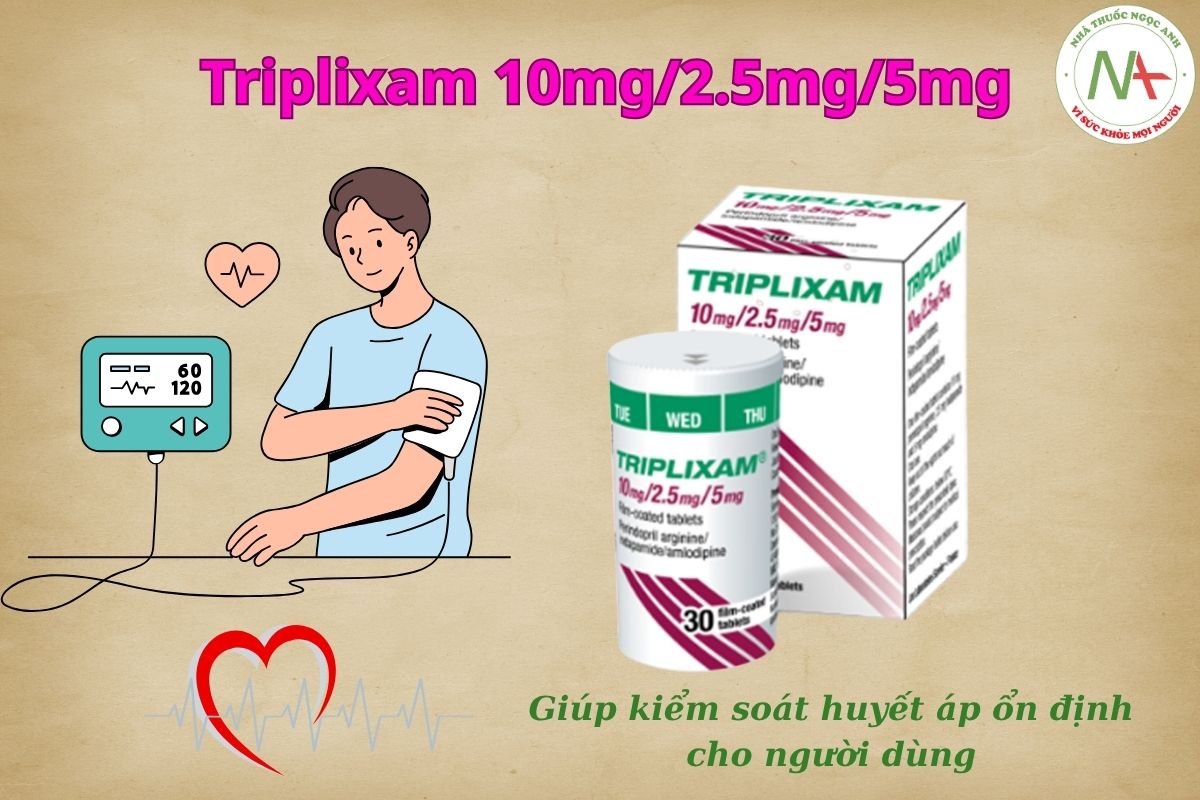 Thuốc Triplixam 10mg/2.5mg/10mg được sử dụng nhằm kiểm soát huyết áp ở người đã ổn định với các thuốc chứa các hoạt chất tương tự.