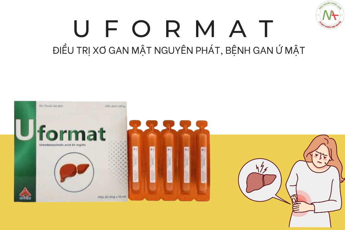 - Liều điều trị xơ gan mật nguyên phát, bệnh gan ứ mật mạn tính trừ trường hợp ứ mật có liên quan đến xơ nang: 12-16 mg/kg/ngày. Bệnh nhân mắc xơ gan mật nguyên phát nên dùng thuốc nhiều lần trong ngày trong 3 tháng đầu theo hướng dẫn của bác sĩ. Đến khi các chỉ số chức năng gan cải thiện, duy trì sử dụng Uformat 1 lần/ngày vào buổi tối.