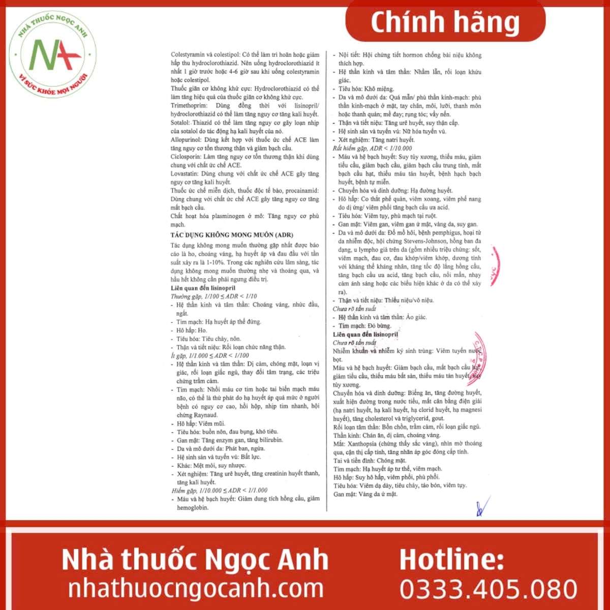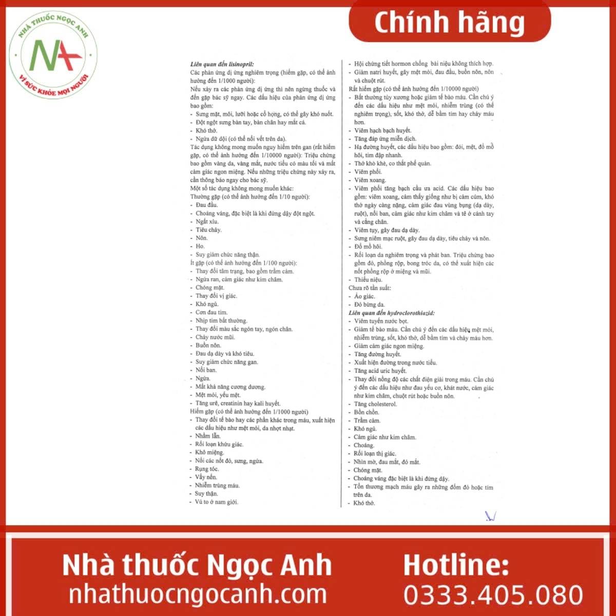 - Mẫn cảm với các hoạt chất lisinopril, hydroclorothiazid hoặc bất cứ thành phần nào của thuốc.