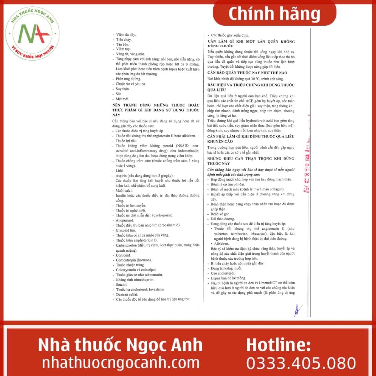 Tác dụng không mong muốn của UmenoHCT 20/25