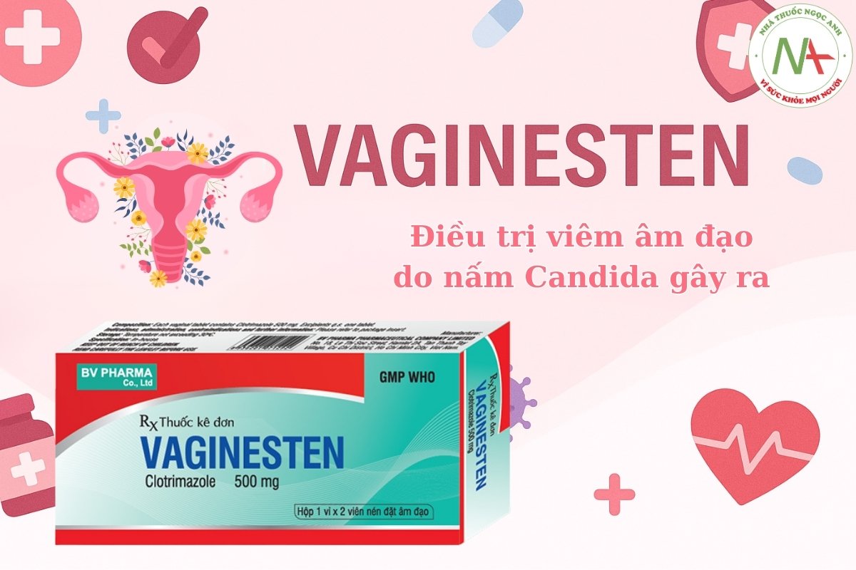 Thuốc Vaginesten được chỉ định trong điều trị các trường hợp viêm âm đạo do nấm Candida gây ra, giúp cải thiện các triệu chứng như ngứa, rát, và tiết dịch âm đạo bất thường.