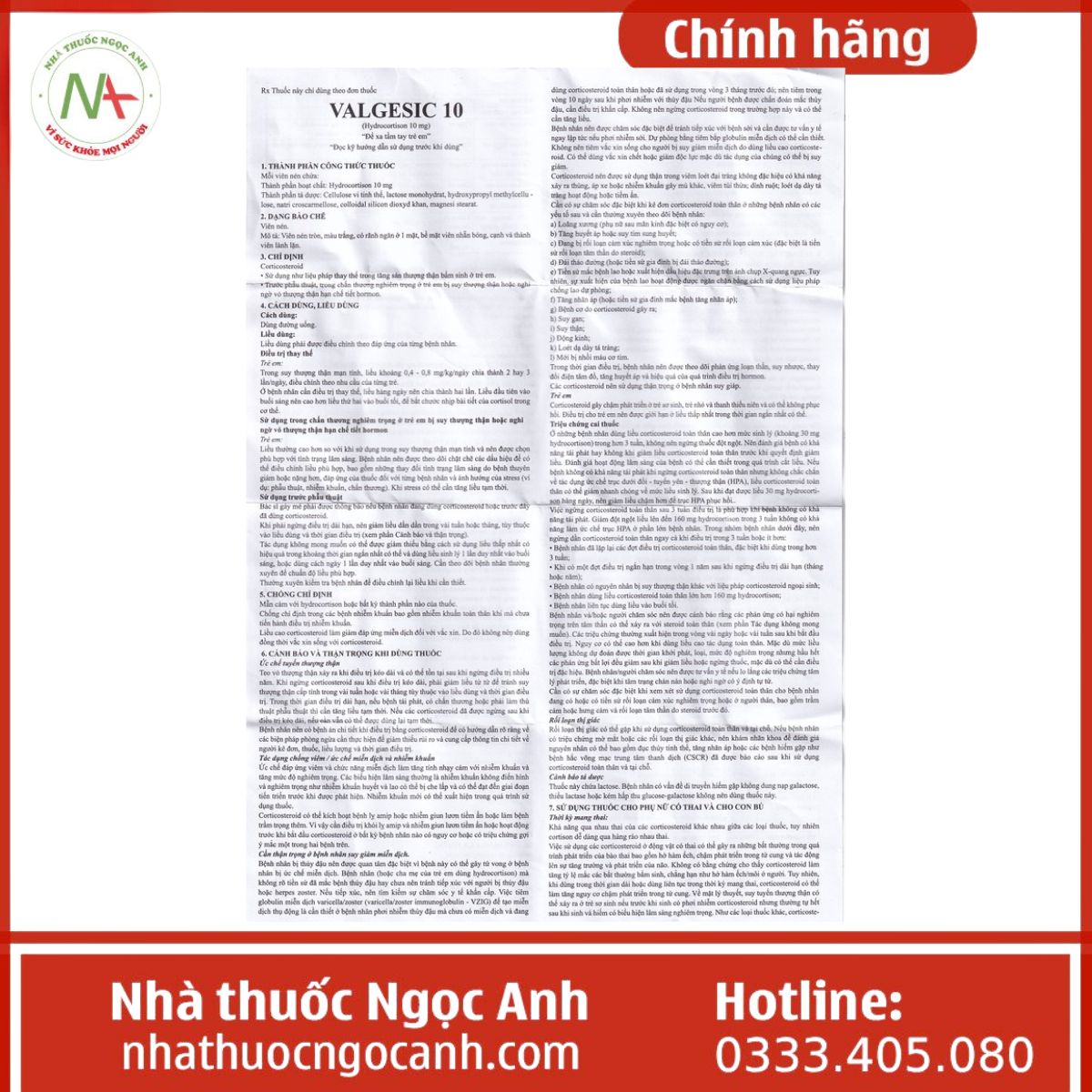Phụ nữ mang thai: Corticosteroid có thể qua nhau thai, ảnh hưởng đến sự phát triển của thai nhi, gây chậm phát triển trong tử cung hoặc suy tuyến thượng thận tạm thời ở trẻ sơ sinh. Tuy chưa có bằng chứng rõ ràng về nguy cơ dị tật bẩm sinh ở người, nhưng chỉ nên sử dụng Valgesic 10 trên bà mẹ mang thai khi lợi ích vượt trội nguy cơ.