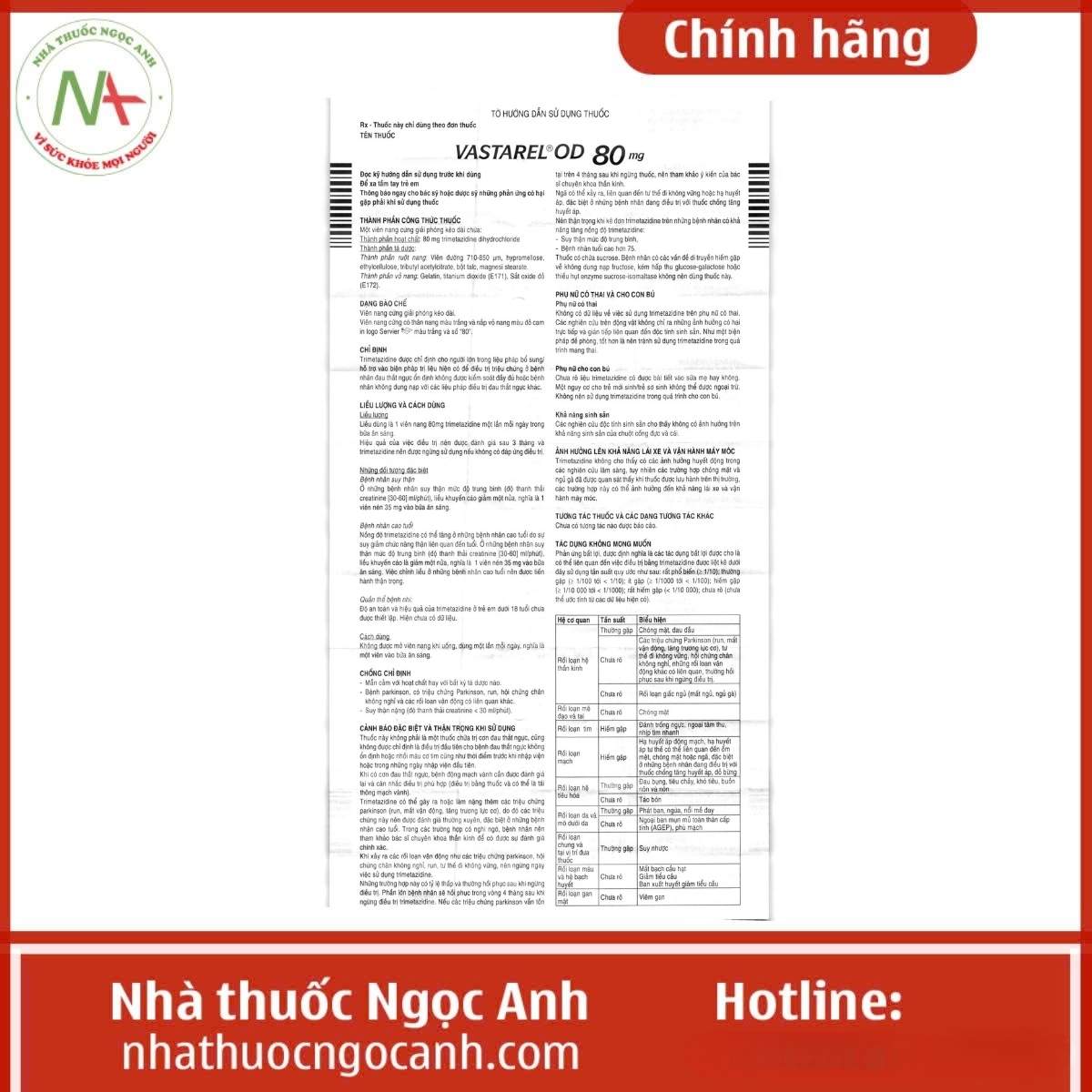 - Tờ Hướng dẫn sử dụng thuốc Vastarel OD 80mg do Nhà sản xuất cung cấp. Xem và tải file PDF đầy đủ tại đây.