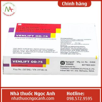 - Thuốc Venlift OD-75 được sản xuất theo quy trình sản xuất đạt chuẩn, được nhập khẩu chính hãng từ Ấn Độ và được Bộ Y tế Việt Nam cấp phép lưu hành trên thị trường dưới dạng thuốc kê đơn.