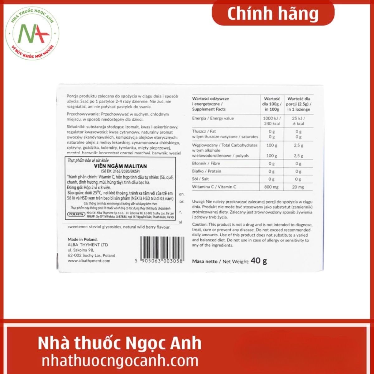 Giá thành viên ngậm Malitan đang được cập nhật tại nhà thuốc Ngọc Anh. Sự chênh lệch giá là không đáng kể.
