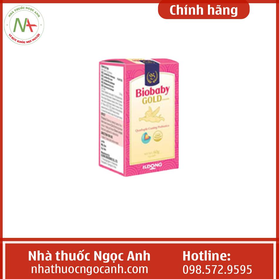Viên nhai Biobaby Gold là thực phẩm bổ trợ sức khỏe được sản xuất bởi thương hiệu Ildong (Hàn Quốc). Công dụng chính là bổ sung lợi khuẩn và các chất dinh dưỡng, giúp nâng cao sức đề kháng cho cơ thể.