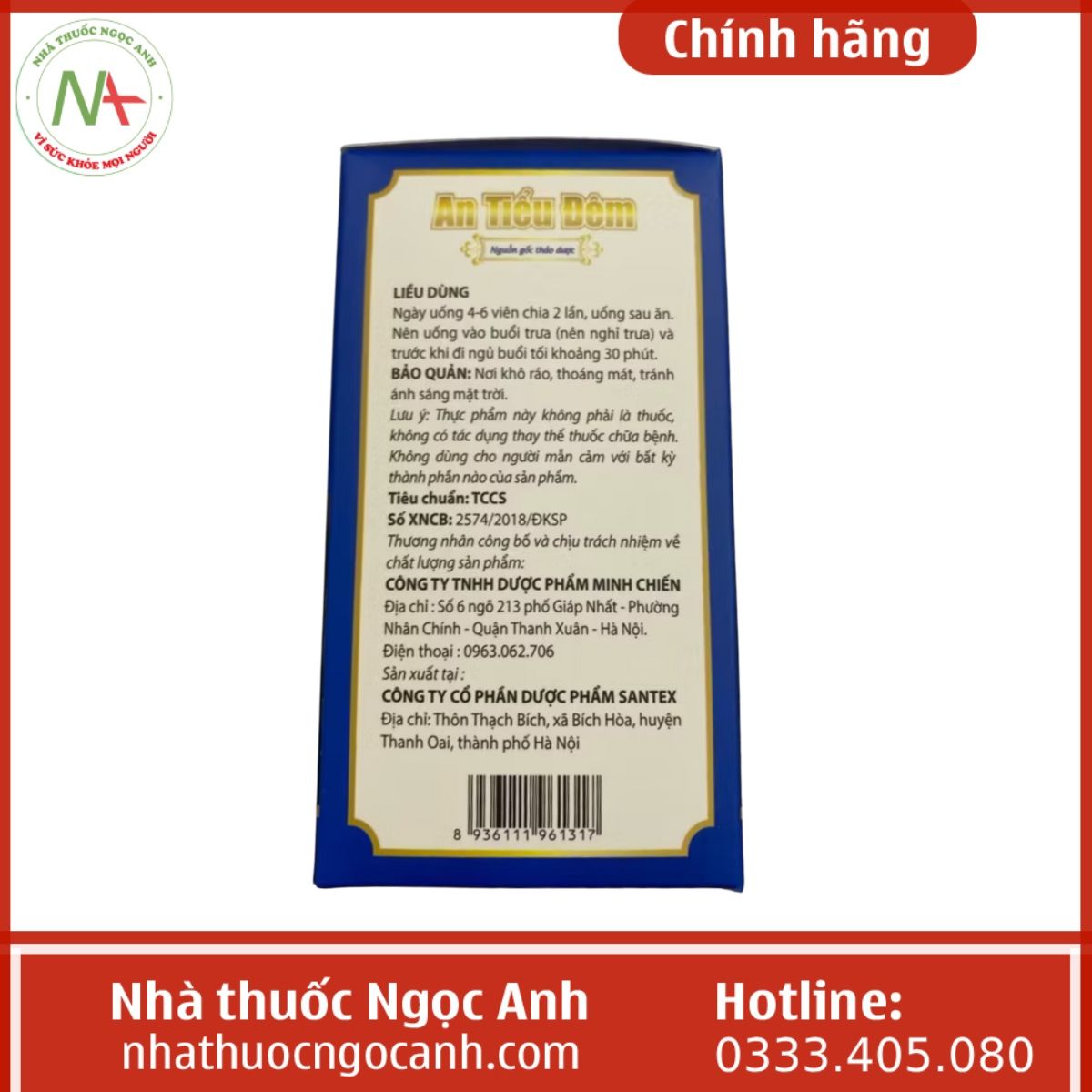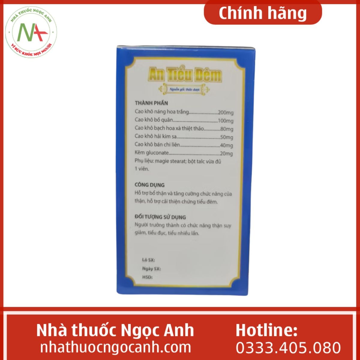 Nhà thuốc Ngọc Anh là đơn vị phân phối Viên Uống An Tiểu Đêm cam kết chính hãng, nói không với hàng giả, hàng nhái. Khi mua hàng, khách hàng sẽ luôn nhận được dịch vụ tư vấn nhiệt tình, chính xác bởi đội ngũ dược sĩ nhà thuốc