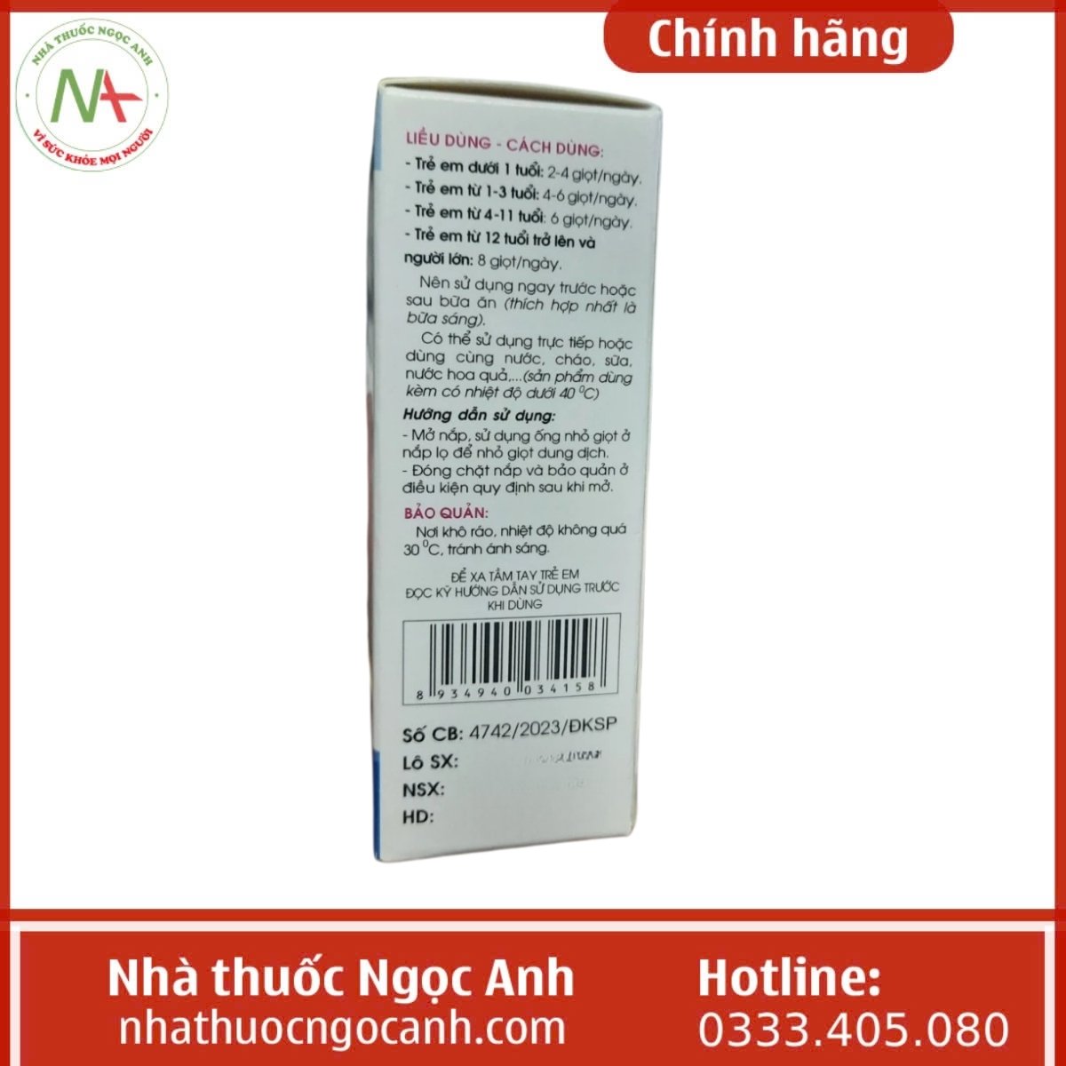 - Trẻ em dưới 1 tuổi: 2 – 4 giọt/ngày.