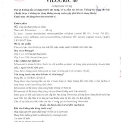 Hướng dẫn sử dụng thuốc Vilouric 40. Tải đầy đủ HDSD bản PDF tại đây.