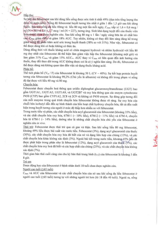 1. Tác giả: James E Frampton, Febuxostat: a review of its use in the treatment of hyperuricaemia in patients with gout, NCBI, truy cập ngày 3 tháng 10 năm 2022.