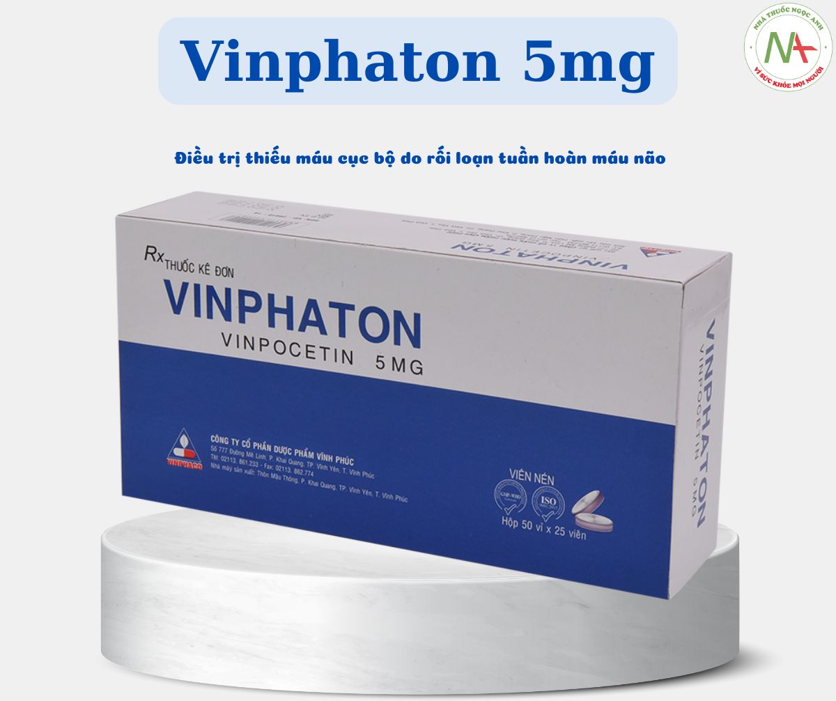 - Vinphaton 5mg điều trị thiếu máu cục bộ do rối loạn tuần hoàn máu não với tình trạng sa sút trí tuệ nguyên nhân vỡ mạch, sau đột quỵ, xơ vữa động mạch máu, bệnh não do tăng huyết áp, sau chấn thương. Vinphaton 5mg làm giảm triệu chứng tâm thần kinh do rối loạn tuần hoàn não.