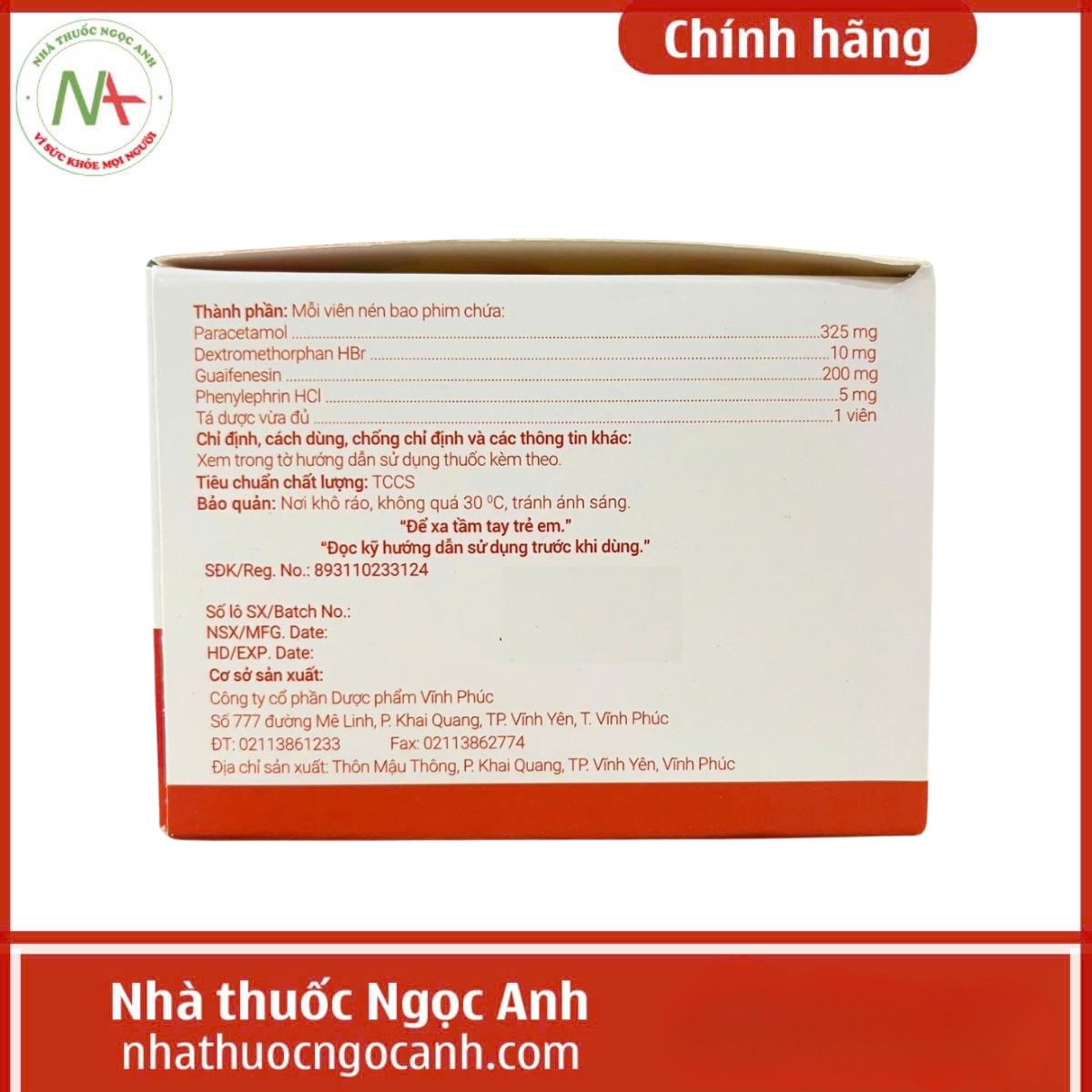 - Công ty sản xuất: Công ty cổ phần dược phẩm Vĩnh Phúc