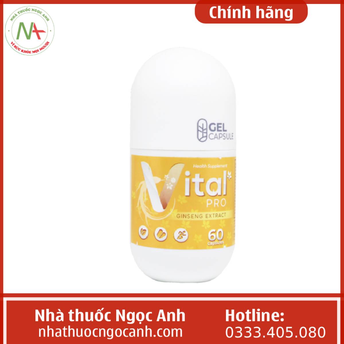 Vital Pro thuộc nhóm thực phẩm bảo vệ sức khỏe, có tác dụng tăng cường sức đề kháng, bổ sung vitamin và khoáng chất, giảm mệt mỏi. Đây là một sản phẩm được sản xuất bởi Công ty cổ phần dược phẩm CPC1 Hà Nội và đã được cấp phép lưu hành trên thị trường với số đăng ký 9149/2021/ĐKSP.
