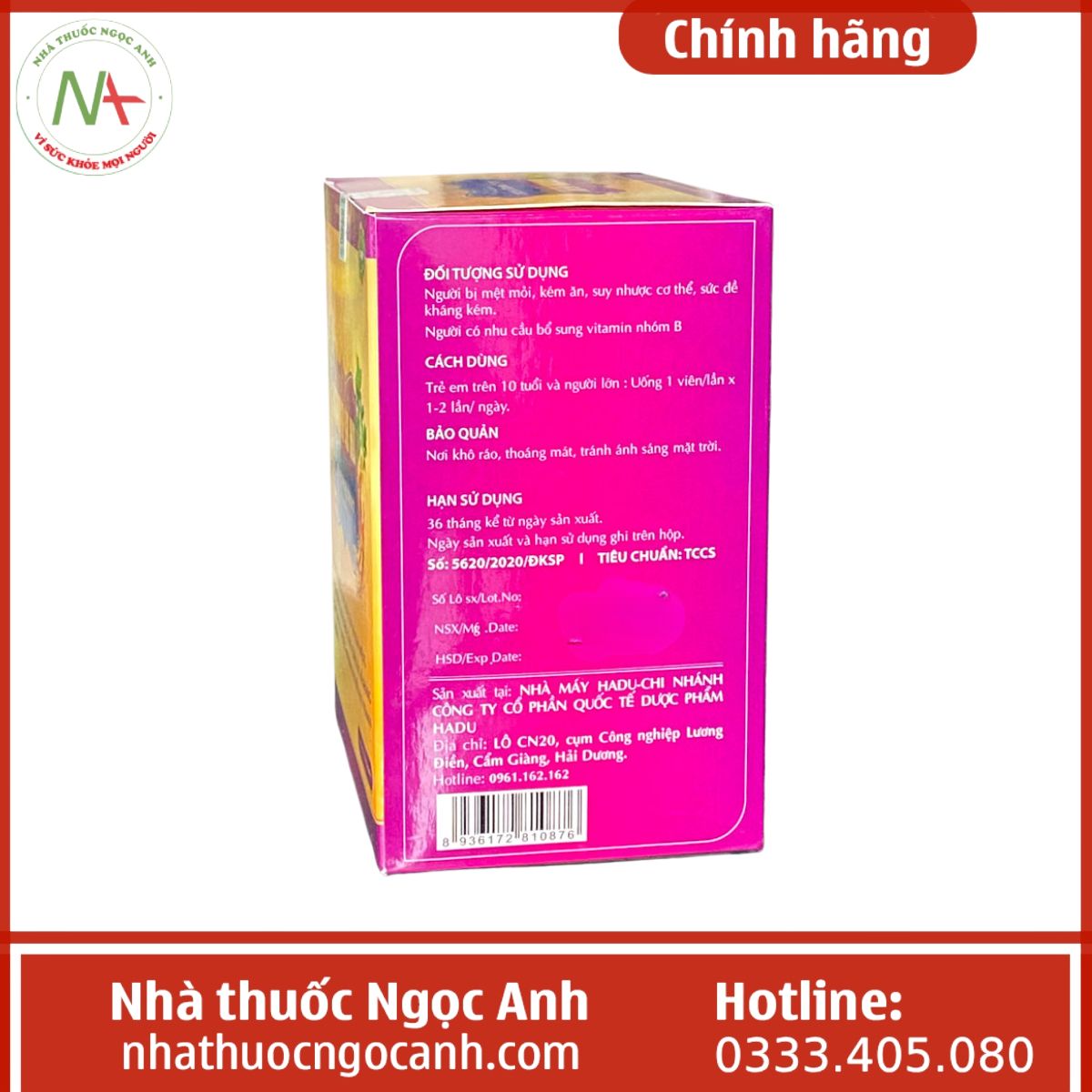 - Sản phẩm chỉ hỗ trợ bổ sung các loại vitamin B thiết yếu, không thay thể thuốc điều trị bệnh do thiếu vitamin B tổng hợp