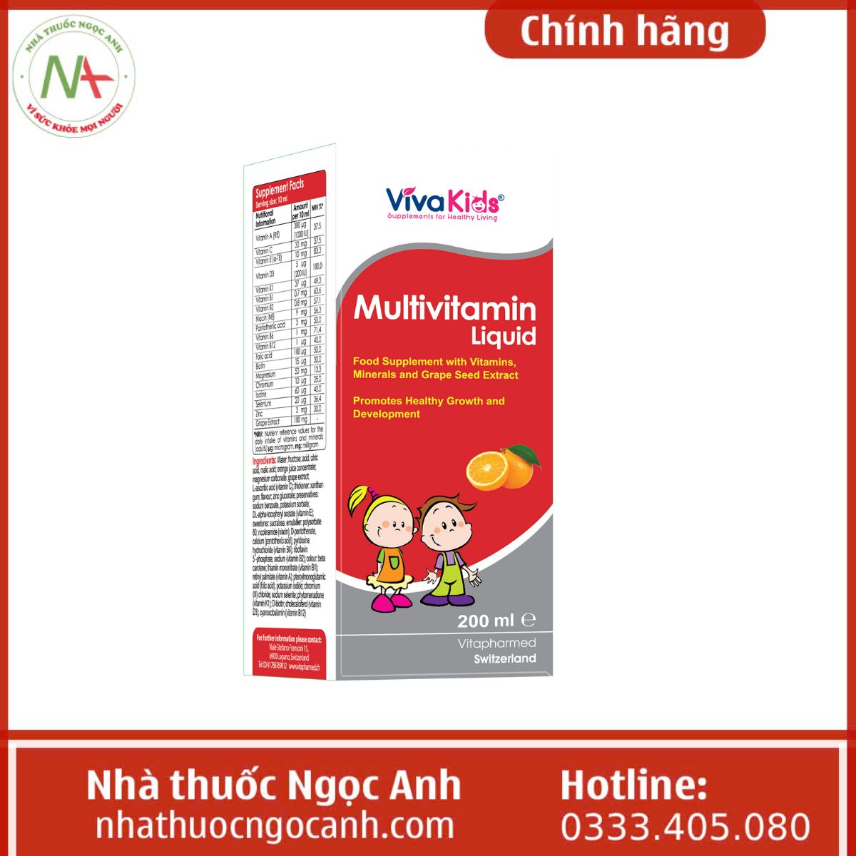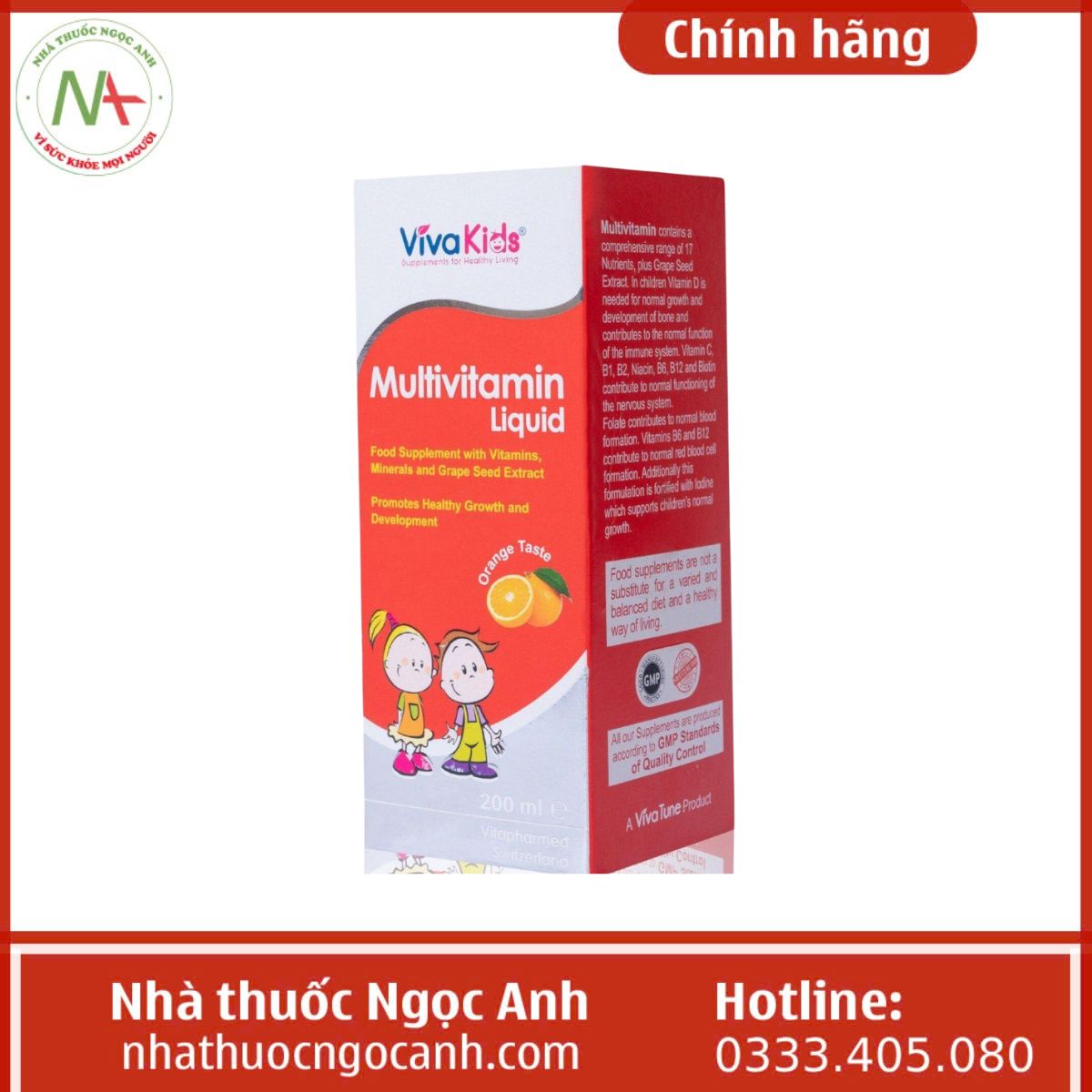 Nhà thuốc Ngọc Anh hiện nay là một trong những địa chỉ bán VivaKids Multivitamin Liquid chính hãng mà quý khách hàng có thể tin tưởng và đặt mua hàng. Nhà thuốc chúng tôi vừa bán hàng trực tiếp tại cửa hàng vừa bán hàng trực tuyến qua website và có chính sách hỗ trợ giao hàng tới mọi nơi trên toàn quốc.