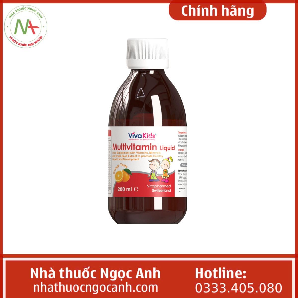 Giá VivaKids Multivitamin Liquid tại Nhà thuốc Ngọc Anh hiện nay đã được cập nhật trên đầu trang. Giá bán này chỉ áp dụng khi mua trực tiếp hay trực tuyến tại Nhà thuốc Ngọc Anh chứ không áp dụng cho các cơ sở hay địa chỉ phân phối khác, các bạn đọc nên lưu ý điều này.
