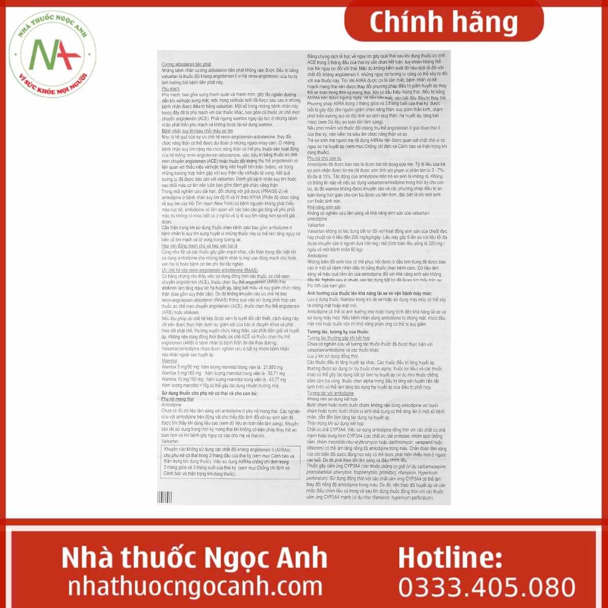 - Chưa có nghiên cứu cụ thể về tương tác giữa valsartan/amlodipine với các thuốc khác.