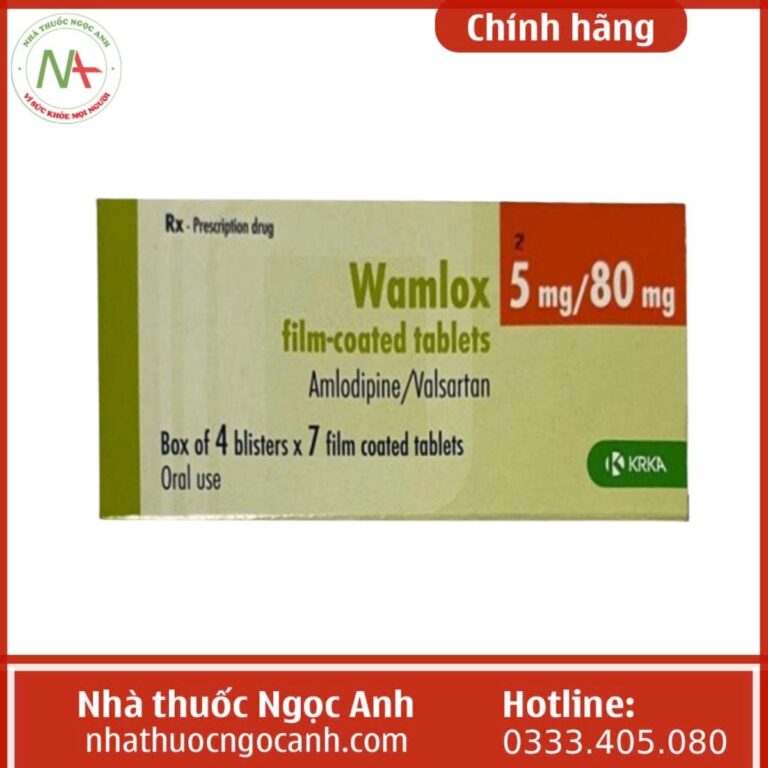 Thuốc Wamlox 5mg/80mg là thuốc điều trị tăng huyết áp, kết hợp hai hoạt chất amlodipine và valsartan để kiểm soát huyết áp hiệu quả hơn so với khi dùng đơn lẻ. Amlodipine là thuốc đối kháng kênh calci giúp giãn mạch, trong khi valsartan là thuốc đối kháng thụ thể angiotensin II, giúp thư giãn mạch máu và giảm áp lực lên tim. Sự kết hợp này mang lại tác dụng bổ trợ, giúp giảm huyết áp ổn định trong 24 giờ, phù hợp cho bệnh nhân tăng huyết áp vô căn cần kiểm soát huyết áp tốt hơn.