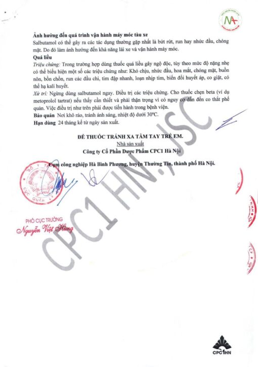 - Nhà sản xuất: Công ty cổ phần Dược phẩm CPC1 Hà Nội