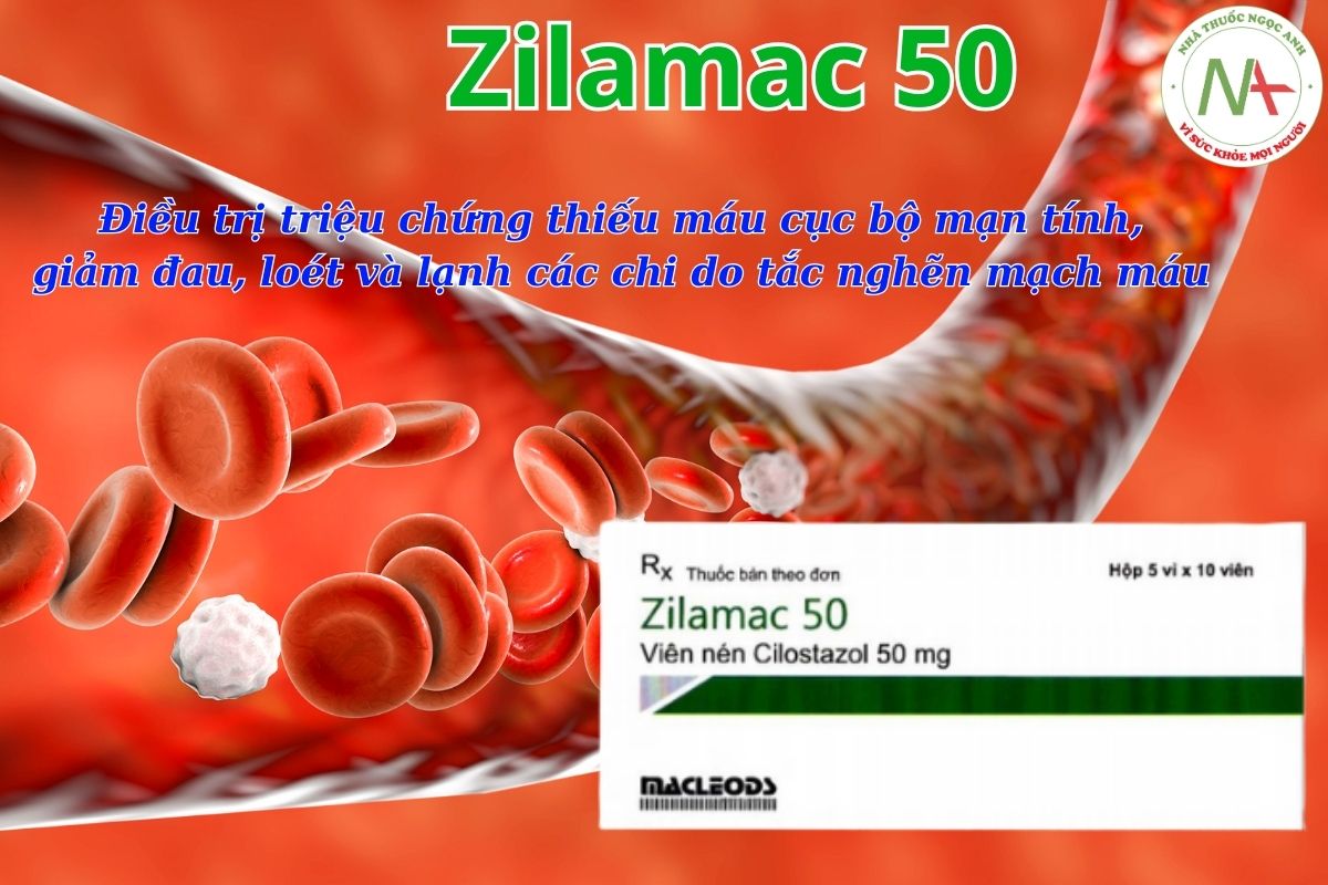 Thuốc Zilamac 50 được sử dụng trong điều trị và hỗ trợ cải thiện các triệu chứng của tình trạng thiếu máu cục bộ ở chi do tắc nghẽn động mạch mãn tính. Cụ thể, thuốc giúp giảm đau, cảm giác lạnh và hỗ trợ hồi phục các vết loét ở chi dưới – những biểu hiện thường gặp trong các bệnh lý sau: