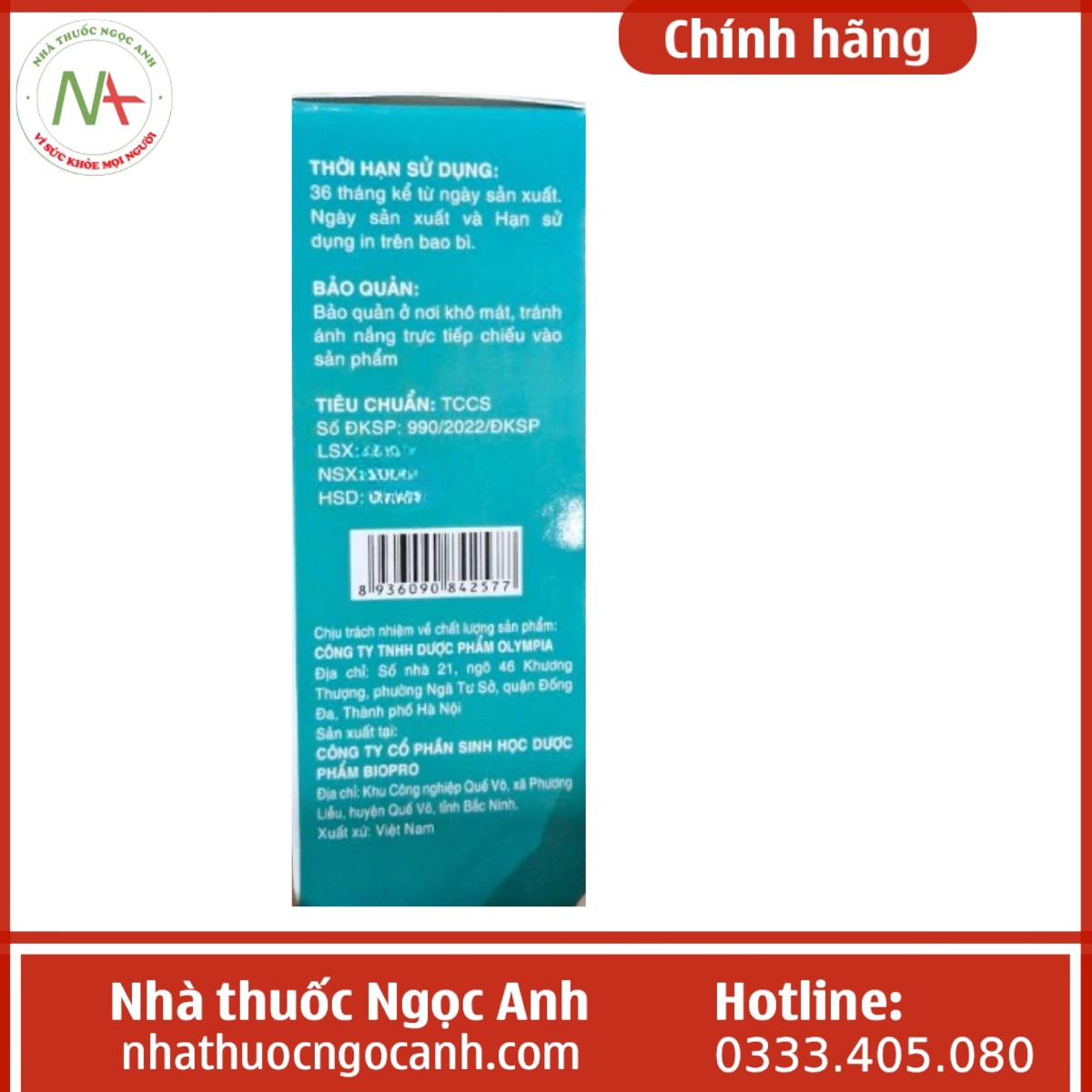 Nhà sản xuất: CÔNG TY TNHH DƯỢC PHẨM OLYMPIA