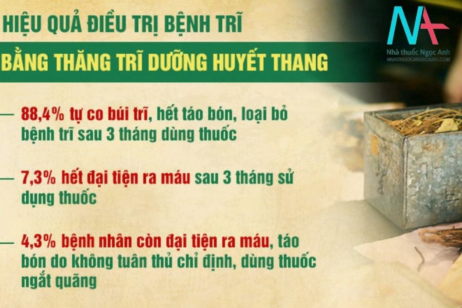 - Phương thuốc đem lại cho người bệnh hiệu quả điều trị tốt. Theo các số liệu thống kê, có đến 88,4% số người bệnh đã khỏi hoàn toàn bệnh trĩ chỉ sau thời gian 3 tháng.