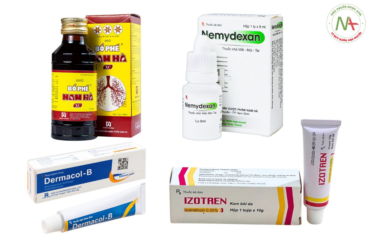 Các sản phẩm nổi bật, góp phần xây dựng thương hiệu Dược phẩm Nam Hà gồm Siro Bổ Phế Nam Hà XC, Izotren 0,1%, Nemydexan, Dermacol-B 8g,…