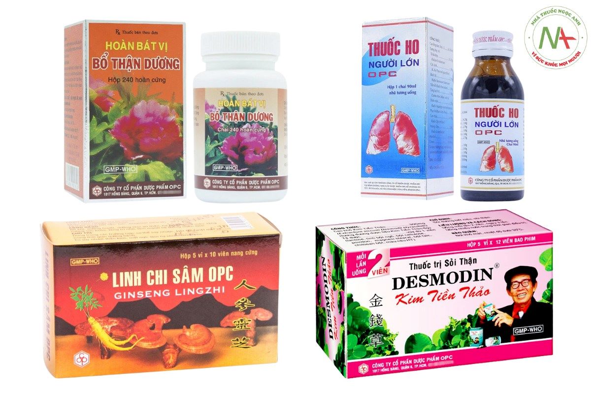 Một số sản phẩm tiêu biểu do Công ty Cổ phần Dược phẩm OPC sản xuất như Hoàn Bát Vị Bổ Thận Dương, Thuốc Ho Người Lớn OPC, Linh chi sâm OPC, Desmodin Kim tiền thảo,…